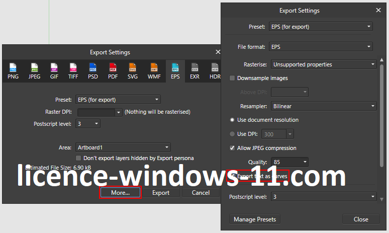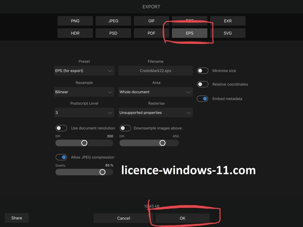 - Large prise en charge de fichiers – PSD, PDF, SVG, PNG, TIFF, EPS, GIF et DWG/DXF.