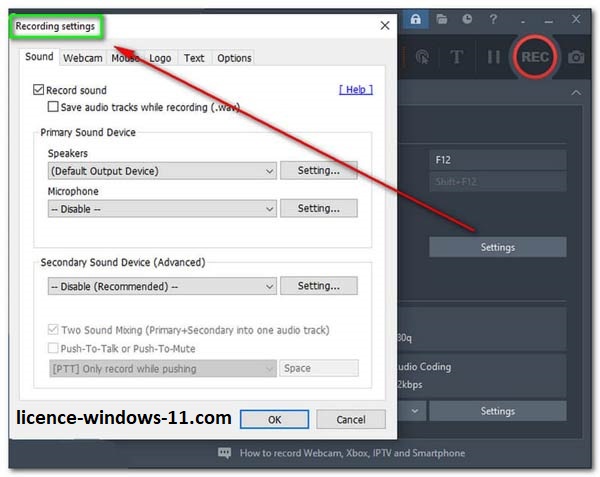 ✔️ Allez dans Paramètres Bandicam Clé de série → Audio.