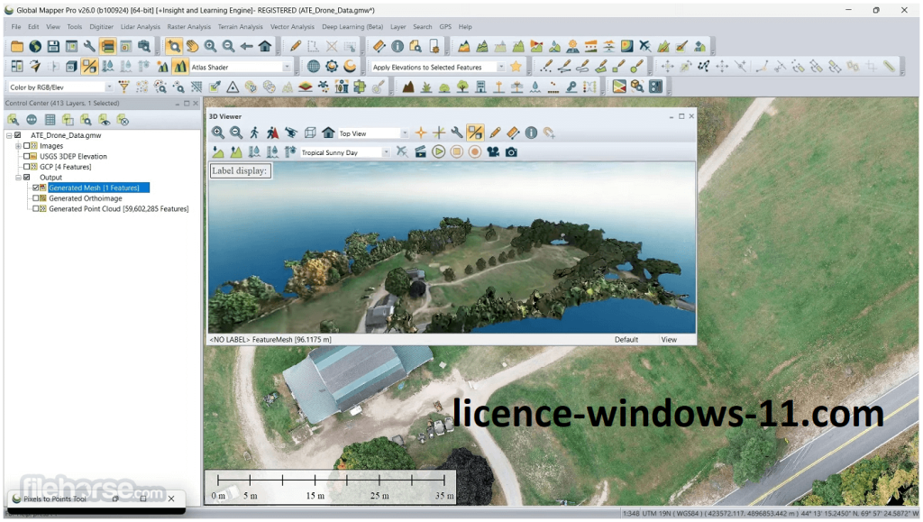 - Utilisez Global Mapper Pro Clé de licence pour les gros ensembles de données LiDAR afin d’optimiser les flux de travail.