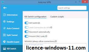 • Permet de maintenir votre IP cachée même lors d’une utilisation partielle du VPN.