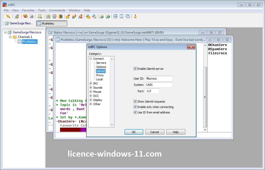 - Ouvrez mIRC Code d’enregistrement, saisissez votre pseudonyme et connectez-vous à un serveur.